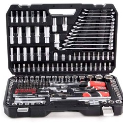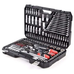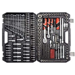 Lo Yato YT-38841 è un set completo di 216 pezzi di chiavi a bussola e accessori, progettato per soddisfare le esigenze dei meccanici professionisti, degli artigiani e degli appassionati di fai-da-te che richiedono la massima versatilità e affidabilità. Questo kit comprende bussole, chiavi a cricchetto (con meccanismo a 72 denti e angolo di ripresa di 5°), prolunghe, inserti per avvitatori e chiavi combinate, coprendo un'ampia gamma di misure e applicazioni. Realizzati in robusto acciaio al cromo-vanadio (CrV), gli utensili Yato garantiscono durabilità, resistenza e precisione, il tutto organizzato in una pratica valigetta per un trasporto e stoccaggio ottimali. È lo strumento definitivo per qualsiasi officina o cantiere, pronto ad affrontare ogni tipo di serraggio o allentamento.