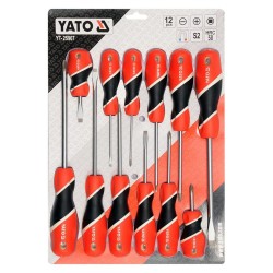 Affronta qualsiasi progetto di montaggio o riparazione con la sicurezza dei professionisti grazie al set di cacciaviti YATO YT-25967. Questo kit completo da 12 pezzi è progettato per chi cerca affidabilità e durata: ogni stelo è forgiato in acciaio S2 di alta qualità, un materiale superiore al comune cromo-vanadio, capace di raggiungere una durezza di 58 HRC per resistere a torsioni elevate senza deformarsi. La vera differenza si sente nell'uso quotidiano: le impugnature ergonomiche in doppio materiale (PP e TPR) offrono un grip antiscivolo che riduce l'affaticamento della mano anche durante i serraggi più ostinati. Le punte, sabbiate e magnetiche, garantiscono una presa sicura sulla testa della vite, prevenendo scivolamenti accidentali che potrebbero danneggiare il pezzo su cui lavori. Che tu debba avvitare su legno, montare mobili o effettuare manutenzioni meccaniche, avrai sempre la misura giusta a portata di mano tra impronte a taglio, croce (Phillips) e quadro.