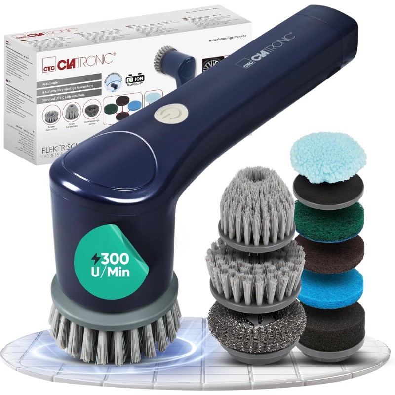 Clatronic ERB3815A Spazzola Elettrica per Pulizia Ricaricabile 8 Accessori 300 giri/min Protezione IPX5