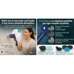 - Set di 8 Testine Intercambiabili: Otto accessori diversi inclusi per adattarsi a ogni tipo di superficie e angolo.