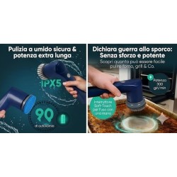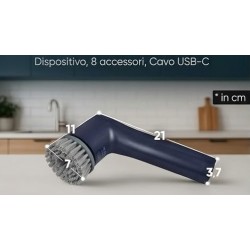 La Clatronic ERB 3815 A è una spazzola per la pulizia senza fili progettata per eliminare lo sporco più ostinato, il calcare e le incrostazioni senza alcuno sforzo manuale. Grazie al suo potente motore che raggiunge i 300 giri al minuto, questo dispositivo sostituisce l'azione meccanica del braccio, garantendo una pulizia profonda e uniforme in una frazione del tempo abituale. La struttura ergonomica con finitura "soft touch" assicura una presa comoda e sicura anche con le mani bagnate. Versatilità e resistenza sono i suoi punti di forza: la certificazione IPX5 protegge il dispositivo dai getti d'acqua, permettendone l'uso sicuro in ambienti umidi come docce e vasche. La batteria ricaricabile agli ioni di litio offre un'autonomia eccezionale fino a 90 minuti, ideale per pulizie domestiche complete o per la manutenzione di veicoli e attrezzature da esterno, il tutto supportato dalla moderna ricarica tramite cavo USB-C.