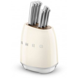 Smeg Ceppo Coltelli 50's Style Panna Set 6 Coltelli Acciaio Inox Tedesco Ceppo Legno Acacia