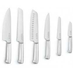 - Composizione Set: Coltello Verdura Lama 8 cm, Coltello Multiuso Lama 13 cm, Coltello Carne Lama 15 cm, Coltello Santoku Lama 18 cm, Coltello Pane: Lama 19 cm, Coltello Chef Lama 19 cm