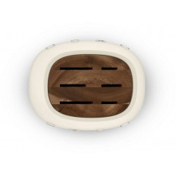 - Base Antiscivolo: La base in plastica con finitura cromata lucida è dotata di un grip antiscivolo per mantenere il ceppo stabile sul piano di lavoro durante l'estrazione dei coltelli.