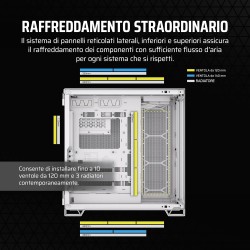 - Ampio Supporto Radiatori: Possibilità di montare radiatori da 360mm simultaneamente sul tetto, sul fondo e lateralmente.