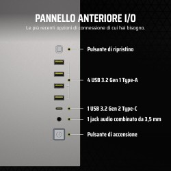 - I/O Moderno sul Pannello Frontale: Dotato di una porta USB 3.2 Gen 2 Type-C e quattro porte USB 3.2 Gen 1 Type-A.