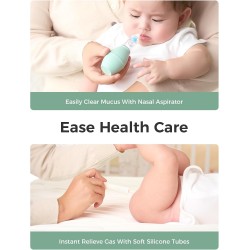 - Aspirazione Nasale Delicata: Aspiratore manuale in morbido silicone che garantisce una pulizia efficace delle narici senza irritare le membrane.