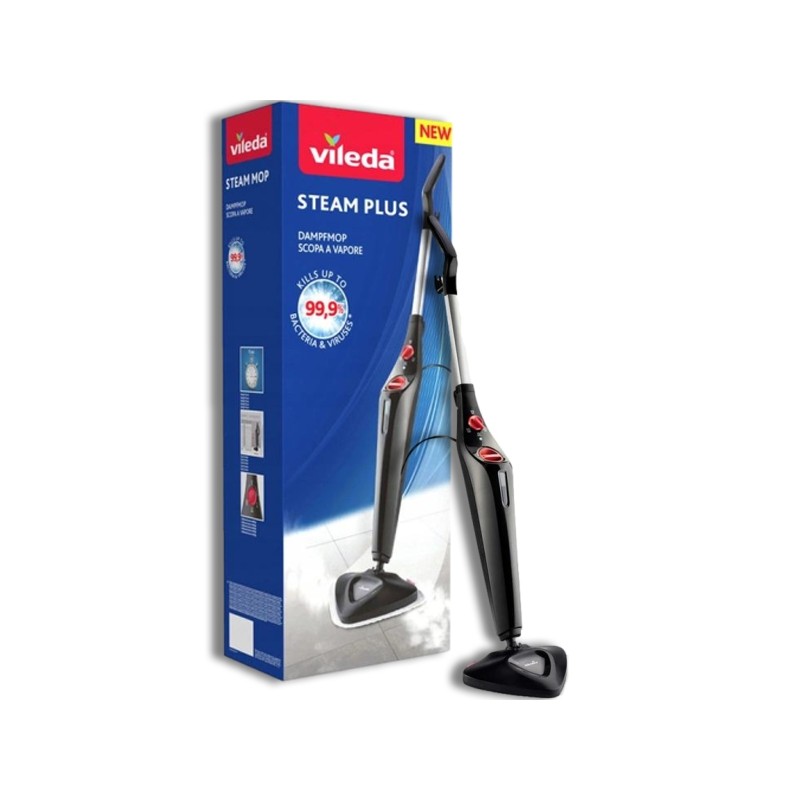 NUOVO DESIGN – QUALITA' COMPROVATA: Vileda Steam Plus è facile da manovrare e ha una testa triangolare girevole. Con un'altezza di 126 cm e un peso di soli 2,3 kg, è particolarmente compatto e leggero. L'impugnatura è di forma ergonomica e si adatta perfettamente alla mano. Scorre rapidamente e facilmente negli angoli, sotto i mobili e in punti difficili da raggiungere. Steam Plus è dotato di una nuova finestra sul serbatoio dell'acqua. Così hai sempre sotto controllo il livello dell'acqua e sai quando è il momento di riempire il serbatoio.
