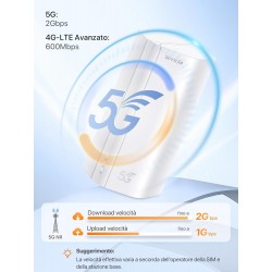 - Tecnologie Cellulari: 5G (SA/NSA), 4G LTE (Cat12 DL / Cat13 UL), 3G WCDMA