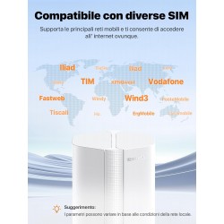 Il Tenda 5G01 è un gateway 5G NR progettato per abbattere i limiti delle connessioni cablate tradizionali. Equipaggiato con un chip avanzato a 12nm e una CPU dual-core, questo router permette di sfruttare le reti 5G SA e NSA per raggiungere velocità di download teoriche fino a 2.2 Gbps. Grazie allo standard Wi-Fi 6 (AX1500), il dispositivo garantisce una gestione efficiente di più dispositivi contemporaneamente, riducendo le latenze e aumentando la larghezza di banda disponibile per ogni utente. La sua natura Plug & Play lo rende estremamente semplice da utilizzare: è sufficiente inserire una Nano-SIM di qualsiasi operatore per essere subito online, senza necessità di configurazioni complesse. Il design elegante e compatto nasconde 6 antenne interne ad alto guadagno che assicurano una copertura stabile in tutta l'abitazione, con la possibilità di espandere ulteriormente la rete grazie al supporto della tecnologia Mesh (WiFi+) di Tenda.