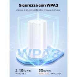 - Sicurezza Avanzata WPA3: Supporto all'ultimo standard di cifratura per proteggere la rete domestica da intrusioni.