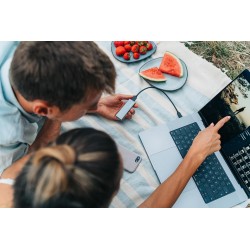 - Connettività universale: Viene fornito con cavi sia USB-C che USB-A, assicurando la compatibilità con una vasta gamma di dispositivi, da PC a TV.