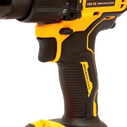 Il DeWalt DCD709N-XJ è un concentrato di tecnologia e potenza, parte dell'apprezzata piattaforma 18V XR. Questo modello si distingue per il suo motore Brushless (senza spazzole), che non solo garantisce una vita utile superiore dell'utensile, ma ottimizza anche l'autonomia della batteria, offrendo più potenza sotto carico. Con una lunghezza di soli 175 mm, è uno dei trapani a percussione più compatti della sua categoria, permettendo ai professionisti di lavorare agevolmente anche negli angoli più angusti o in posizioni scomode senza rinunciare alla forza necessaria. Nonostante le dimensioni ridotte, non scende a compromessi sulle prestazioni: sviluppa fino a 65 Nm di coppia e dispone della funzione a percussione, rendendolo capace di forare efficacemente anche nel mattone e nella muratura. Il mandrino interamente in metallo da 13 mm assicura una presa ferma sulle punte, mentre la luce LED integrata alla base garantisce visibilità totale sull'area di lavoro. Essendo venduto in versione "N" (Bare Unit), è la scelta ideale per chi possiede già batterie e caricabatterie della gamma DeWalt 18V XR e desidera ampliare il proprio parco attrezzi.