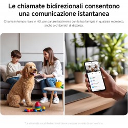 - Controllo Animali Domestici: Controlla i tuoi amici a quattro zampe quando sei fuori casa e comunica con loro per tranquillizzarli.