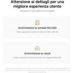 - Archiviazione Flessibile: Supporto per schede MicroSD fino a 256GB, NAS e archiviazione cloud gratuita per i brevi clip di allarme.