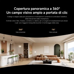 - Pan-Tilt 360°: Copertura panoramica completa con rotazione orizzontale a 360° e verticale a 116°.