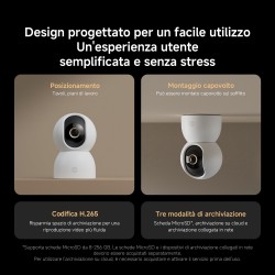 - Contenuto confezione: Xiaomi Smart Camera C500, Alimentatore, Cavo di alimentazione, Manuale utente, Adesivo dima montaggio, Accessori montaggio a parete (1 base, 2 bulloni di espansione, 2 viti M3 da 25 mm)