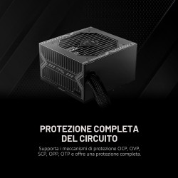 L'MSI MAG A650BN è progettato per offrire ai giocatori un'opzione di alimentazione sicura, affidabile ed efficiente. Grazie alla certificazione 80 PLUS Bronze, garantisce un consumo energetico ridotto e un'efficienza superiore, rendendolo ideale per chi assembla il proprio primo PC da gaming o desidera un upgrade equilibrato. La stabilità del sistema è assicurata dal design del circuito DC-to-DC, che riduce l'instabilità della tensione di uscita e ottimizza l'erogazione di corrente ai componenti critici. La dissipazione del calore è affidata a una ventola da 120 mm con cuscinetti a manicotto (sleeve bearing), studiata per minimizzare il rumore mantenendo temperature operative ottimali anche sotto carico. MSI ha integrato meccanismi di protezione completi (OCP, OVP, SCP, OPP, OTP) per salvaguardare l'hardware da eventuali anomalie elettriche. Con un singolo binario (rail) da 12V e un design a PFC attivo, il MAG A650BN si conferma una scelta eccellente per chi cerca prestazioni concrete senza necessità di configurazioni avanzate, supportata da una garanzia limitata di 5 anni.