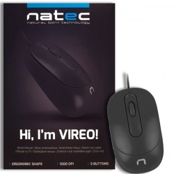 Natec Vireo Mouse Ufficio Cablato USB Ottico 1000 DPI 3 Tasti Ergonomico Nero