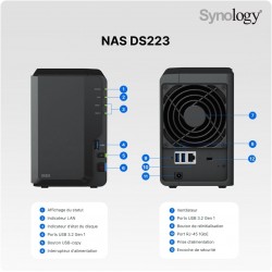 Il Synology DiskStation DS223 è un server NAS a 2 vani potente e versatile, progettato per chi necessita di prestazioni affidabili e funzionalità avanzate per la protezione dei dati. Rispetto alla serie "j", il DS223 raddoppia la memoria a 2 GB di RAM DDR4 e introduce il supporto al file system Btrfs, che permette il ripristino dei dati in caso di errori e la creazione di "snapshot" (istantanee) per proteggersi dai ransomware e dalle cancellazioni accidentali. Alimentato dal sistema operativo DiskStation Manager (DSM), questo dispositivo centralizza documenti, librerie multimediali e backup in un cloud privato sicuro e accessibile da ogni parte del mondo. Grazie alla sua efficienza nel multitasking, il DS223 permette di sincronizzare file tra diversi uffici, gestire una vasta libreria di foto tramite l'intelligenza artificiale e configurare un sistema di videosorveglianza professionale, il tutto mantenendo i consumi energetici ridotti e un'operatività estremamente silenziosa.