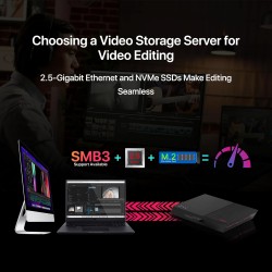 - Doppia Rete Ultra-Veloce: 2 porte 2.5 Gigabit Ethernet (2.5 GbE) con supporto SMB Multichannel per velocità I/O massime.