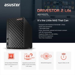 ASUSTOR NAS Drivestor 2 Lite AS1102TL 2-Bay Gigabit Ethernet CPU Quad-Core
